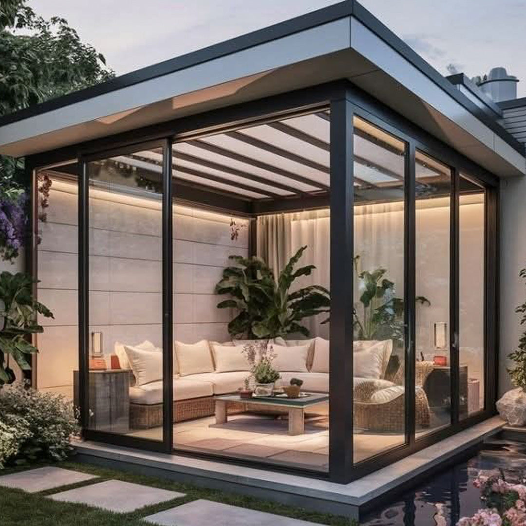 - Glass room – a hybrid outdoor space that can be enclosed in hot or wet weather and opened when conditions are pleasant, offering year-round views and added property value.