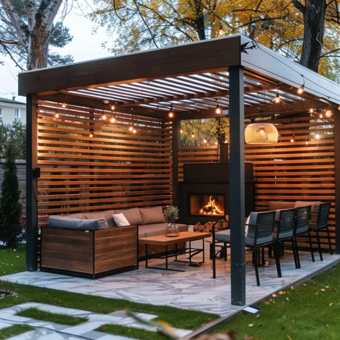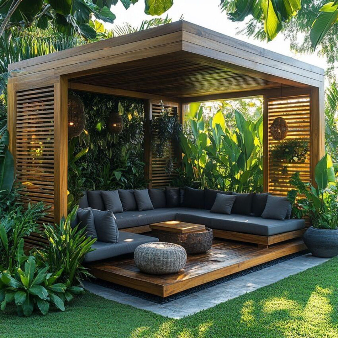 - Gazebo – a raised structure with a closed roof and optional low walls or railing, ideal for shaded seating.