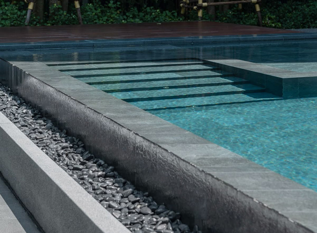 An infinity pool creates the illusion that water extends without boundaries, making it especially dramatic on elevated sites or where it overlooks a view. The effect is achieved by allowing water to spill over one or more edges into a hidden catch pool, where it is collected and recirculated back into the main pool.